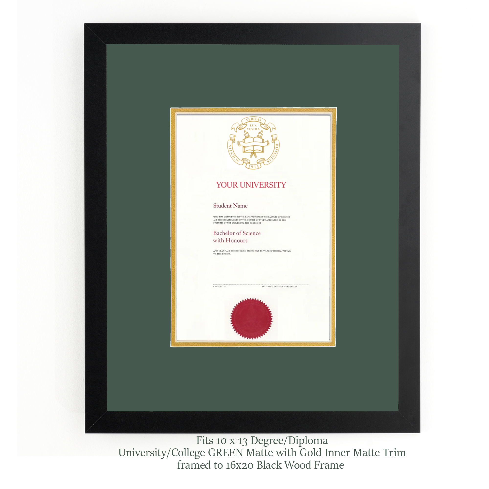 Diploma Frame University/College with GREEN MATTE