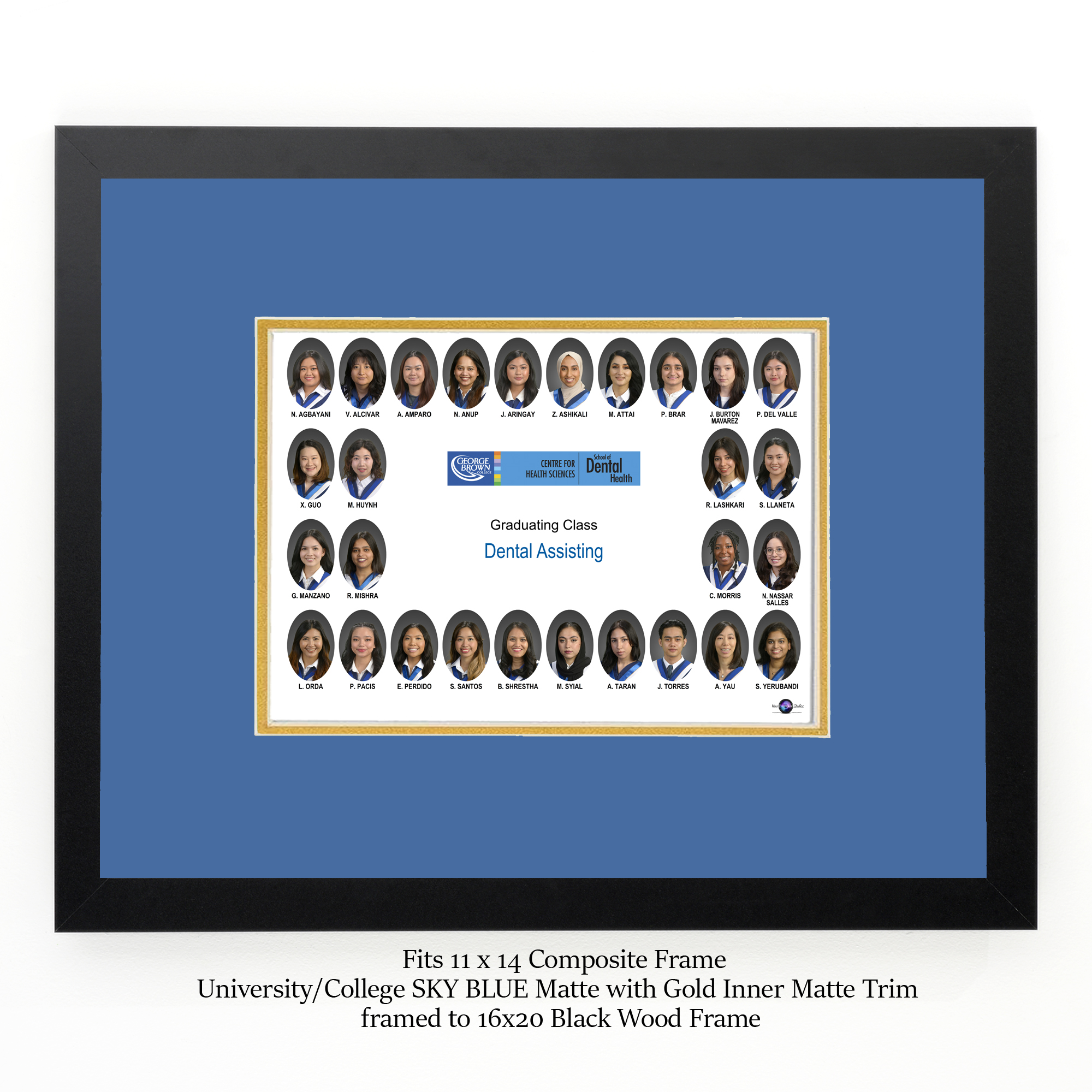 For a horizontal class composites that have an 11x14 print. Suitable for George Brown College, Robbins Hebrew, or any other school with the same SKY BLUE color.