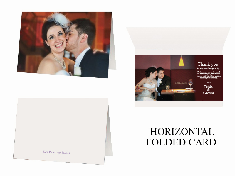 Perfect for sending friends, family and guests a special thank you. All of our cards are custom designed with your image selections. We will email you a proof for approval and then print, in-studio, in quantities starting at 50. The size for this layout is 8.5x5.5.